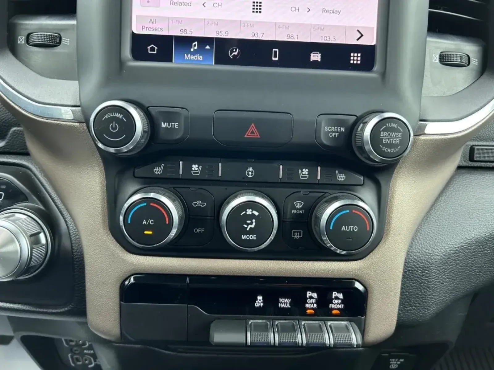 Step inside to experience luxurious comfort with premium black leather seating. The Laramie trim level offers additional features like cooled front seats, a heated steering wheel, and multi-zone climate control, making every drive a pleasure. Safety is paramount, and this truck includes advanced features such as front collision mitigation, a rear-view camera, and child safety locks, providing peace of mind for family trips or off-road journeys.
