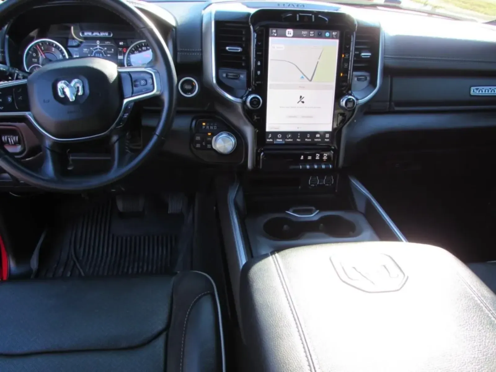Step inside, and you'll be greeted by a spacious and comfortable interior designed for both driver and passenger comfort. The Laramie trim level is packed with premium features including leather seating, advanced technology, and a user-friendly infotainment system. Enjoy seamless connectivity with Bluetooth, hands-free calling, and a high-quality sound system that transforms every drive into an experience. Safety is a top priority, and the Ram 1500 is equipped with essential features to keep you and your loved ones protected on the road.