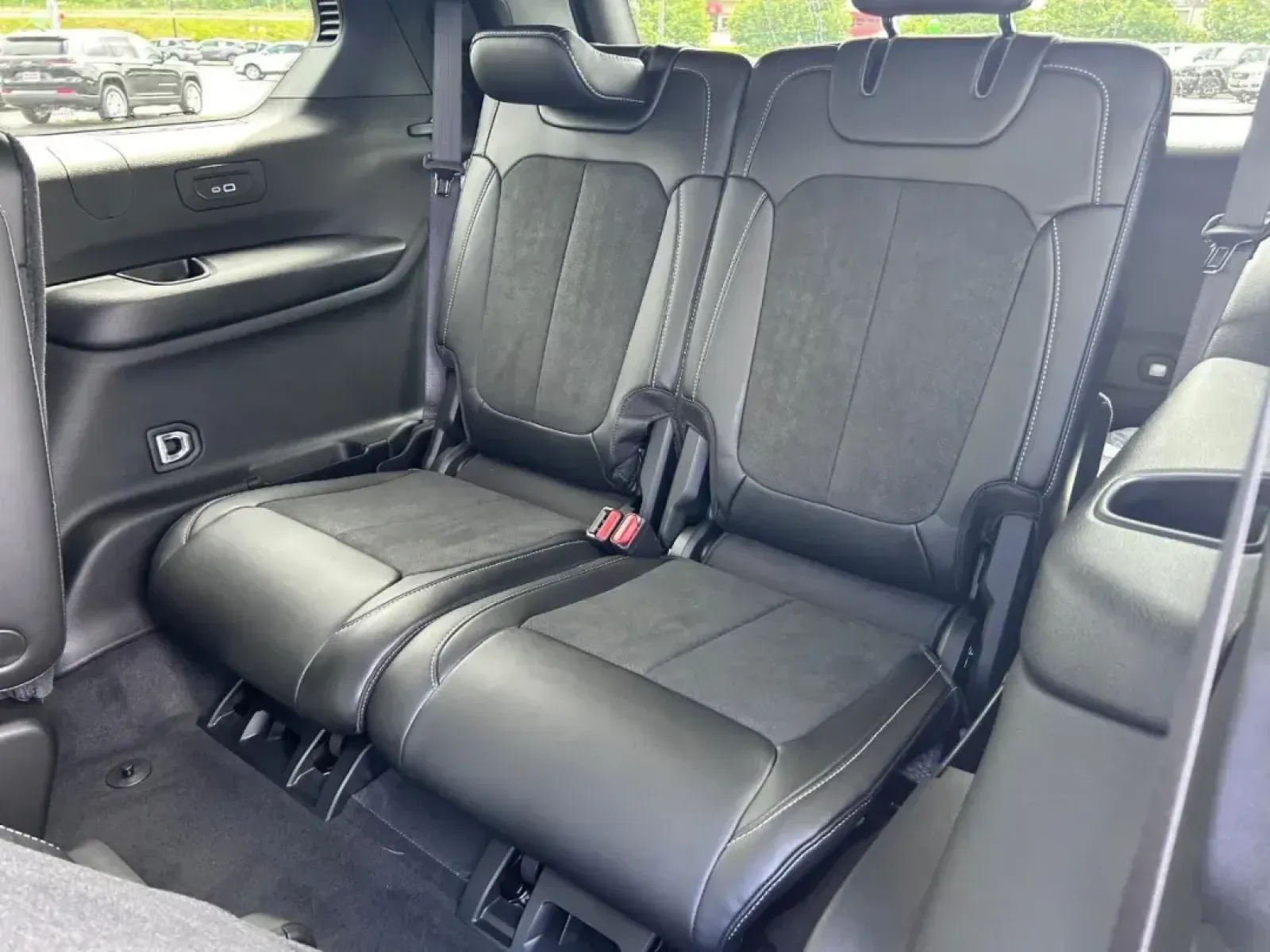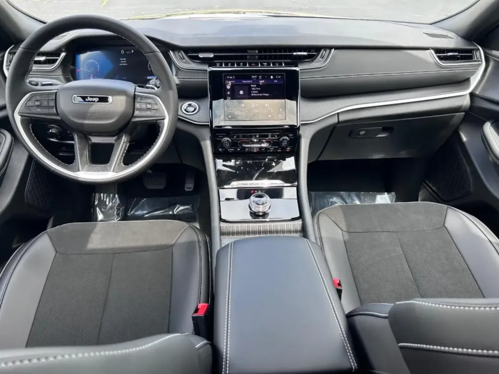 Safety is also a top priority in the Grand Cherokee L, equipped with advanced features like adaptive cruise control, blind spot monitoring, lane departure warning, and front collision mitigation. These features bring peace of mind to any driver, especially those commuting through busy parts of town or navigating the bustling streets of downtown Farmington. The spacious cabin features Global Black Suede upholstery, providing a luxurious feel while also being easy to clean after a long day of outdoor activities.