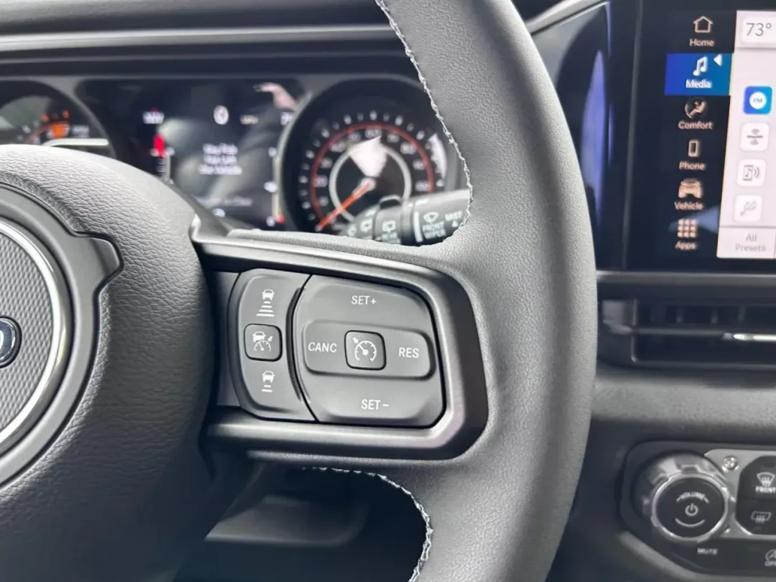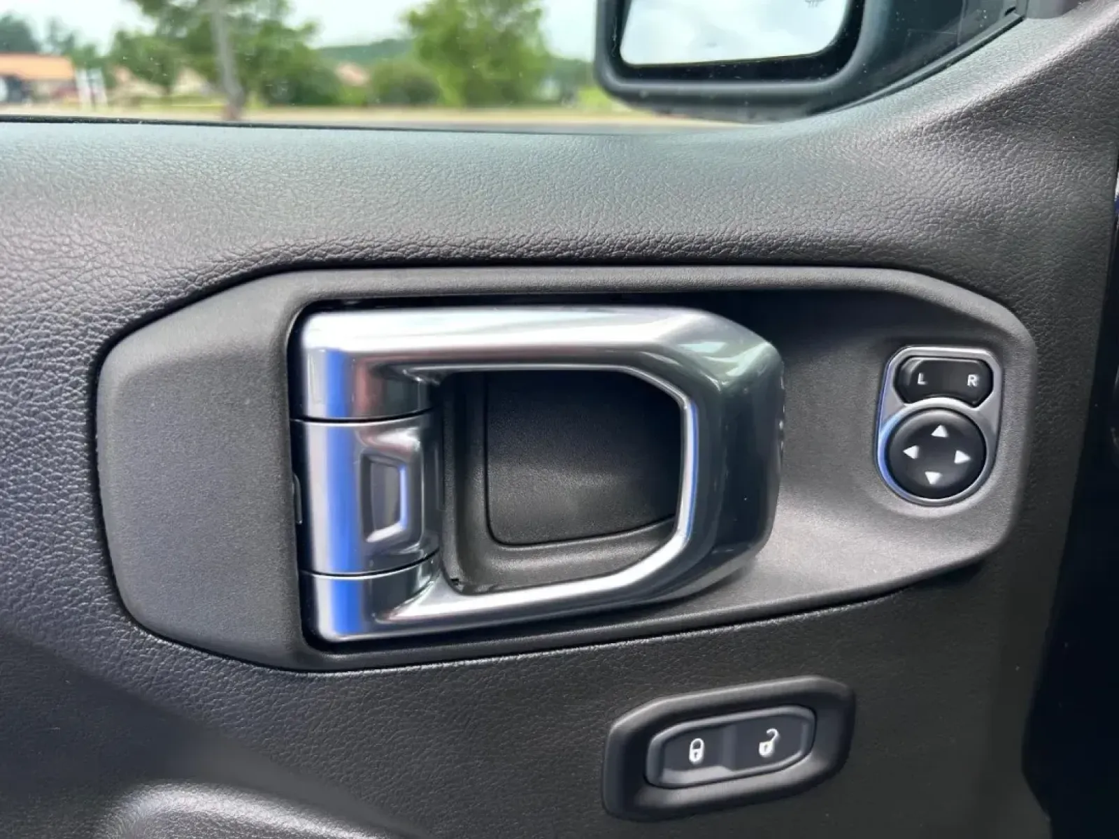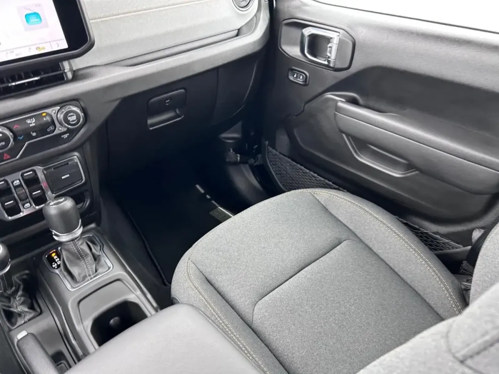 Inside, the Wrangler is equipped with comfort and convenience features that make both short commutes and long journeys enjoyable. The black cloth interior is not just stylish but also easy to maintain. You'll find adjustable bucket seats, a spacious rear bench seat, and child safety locks, making it safe and comfortable for passengers of all ages. The SUV is also designed with modern tech features, including Bluetooth connectivity, an AM/FM stereo, and a backup camera, ensuring you're always connected and aware of your surroundings.